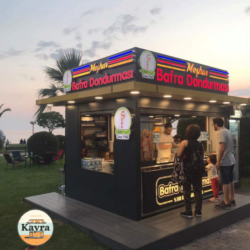 Kiosk büfelerin tamamı -50+50 derce ısı yalıtımlı 40 mm kalınlık,10 kg/m³ polistren köpük (EPS) yangın sınıfı E ile; ısı izolasyonlu tam, sağlıklı ve güvenli malzemelerle yapılır.